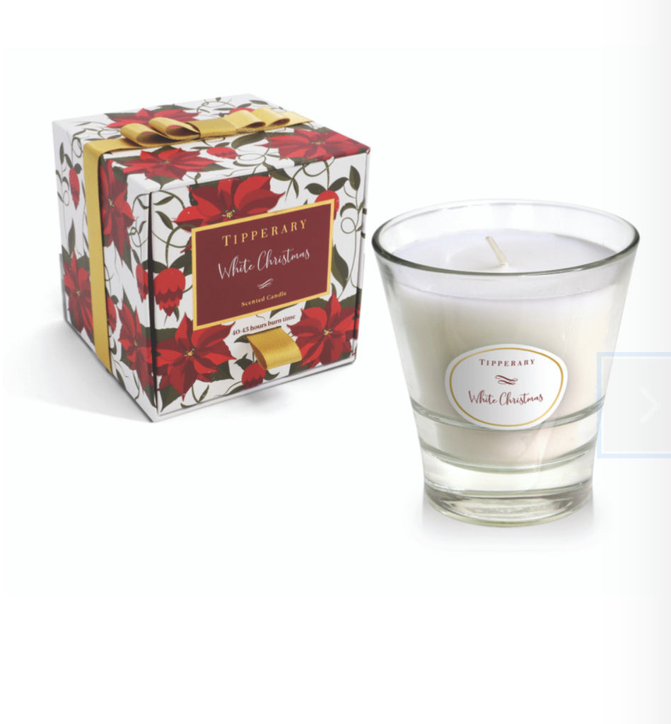 TIPPERARY CRYSTAL Poinsettia Tumbler Candle - White Christmas
