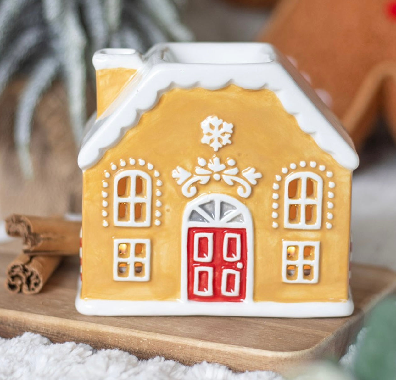 Create a cosy, festive atmosphere with this gingerbread house-shaped ceramic oil burner and wax warmer. Simply add festive-scented essential oils or wax melts to the top, light a tealight candle in the base, and let the gentle glow fill the room with delicious aromas. A sweet addition to any seasonal home decor. Do not use more than one tealight. Never leave a lit burner unattended and allow to cool fully before handling. Designed by Something Different Wholesale and part of the A Christmas Wish collection of Christmas gifts and home decor.