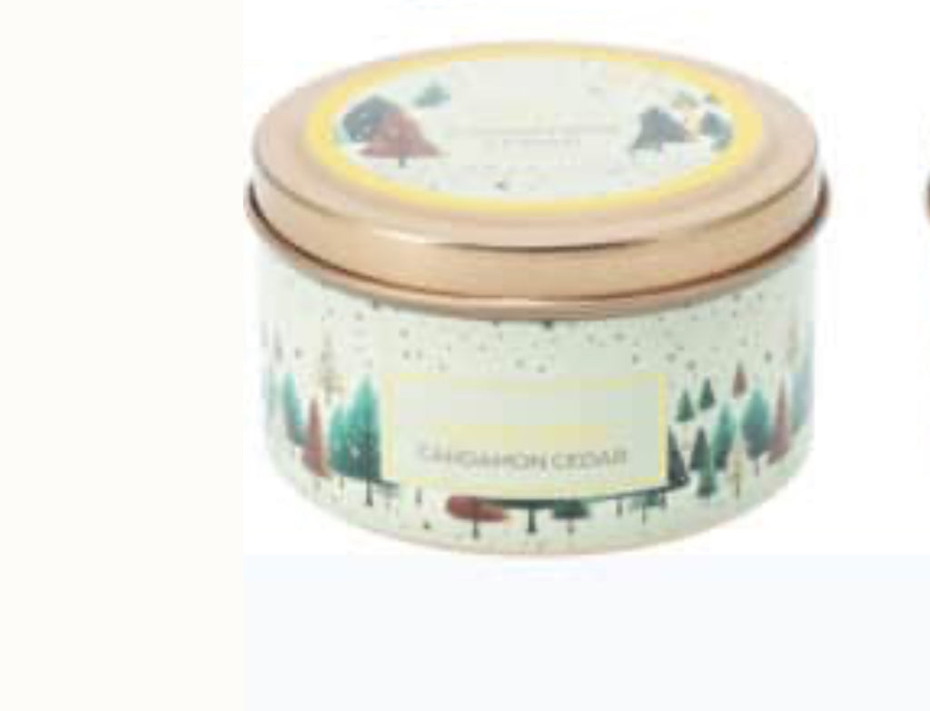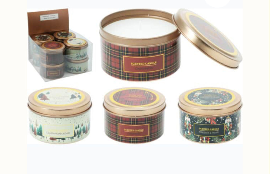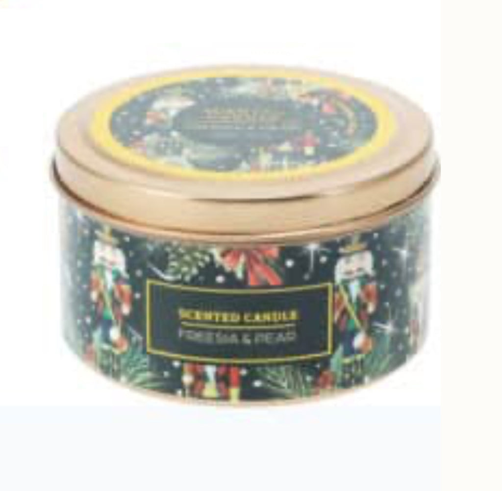 CHRISTMAS SCENTED CANDLE IN TIN - Freesia and Pear is backordered and will ship as soon as it is back in stock.