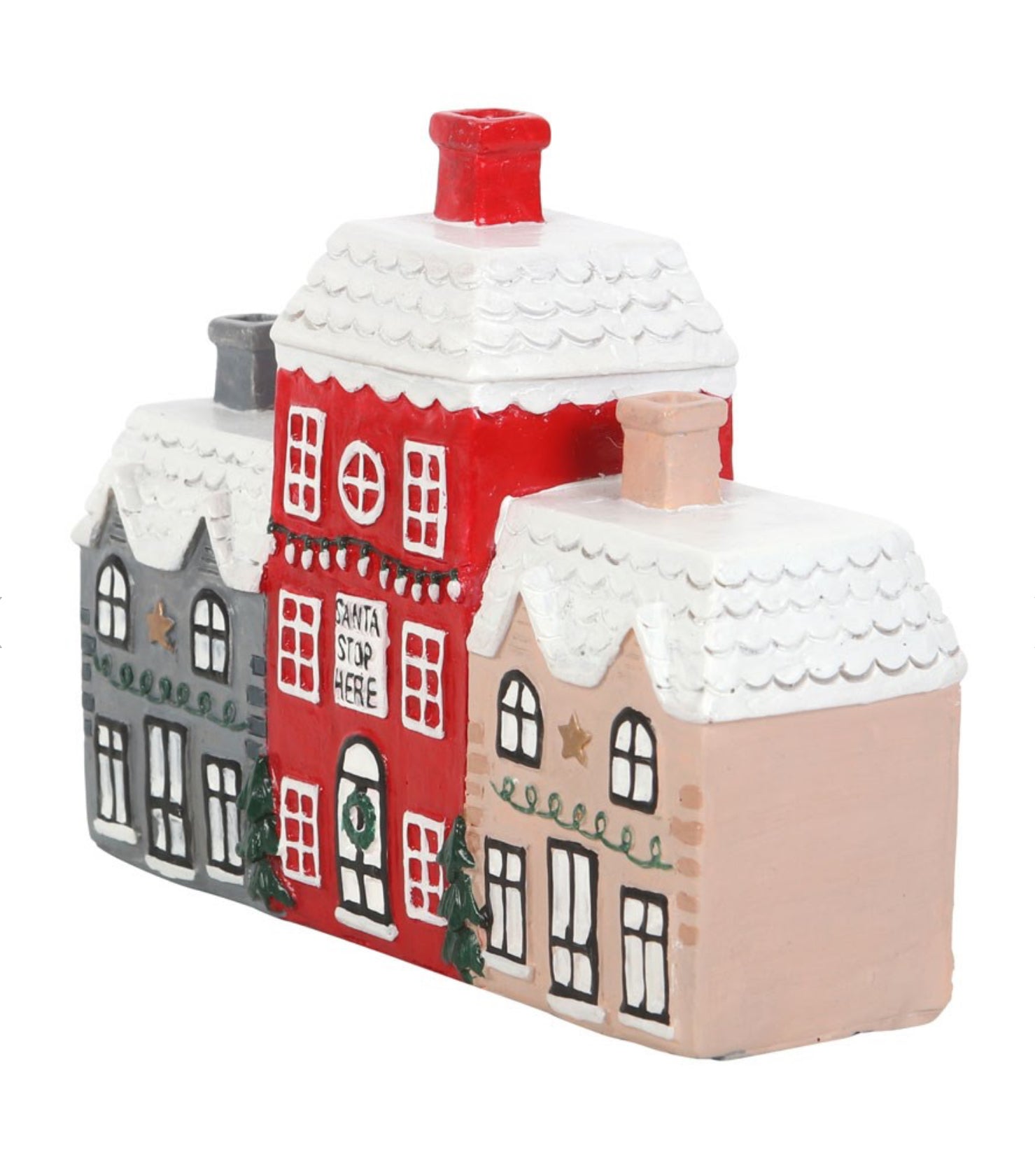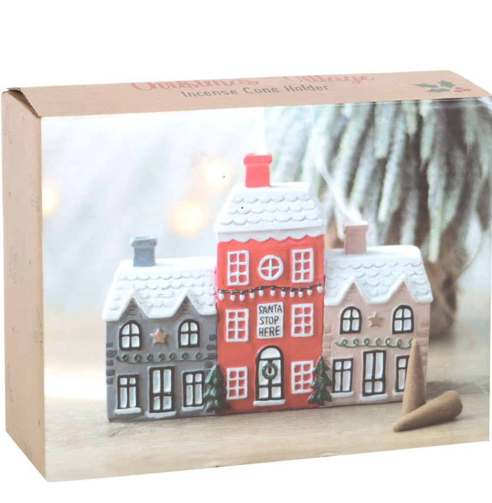 Bring the cosy feel of the festive season into the home with our charming Christmas house incense cone burner. With its unique design featuring three miniature houses, it doubles as both a functional home fragrance accessory and a decorative Christmas piece. Designed by Something Different Wholesale and part of the Christmas Village range of festive gifts and home decor.
