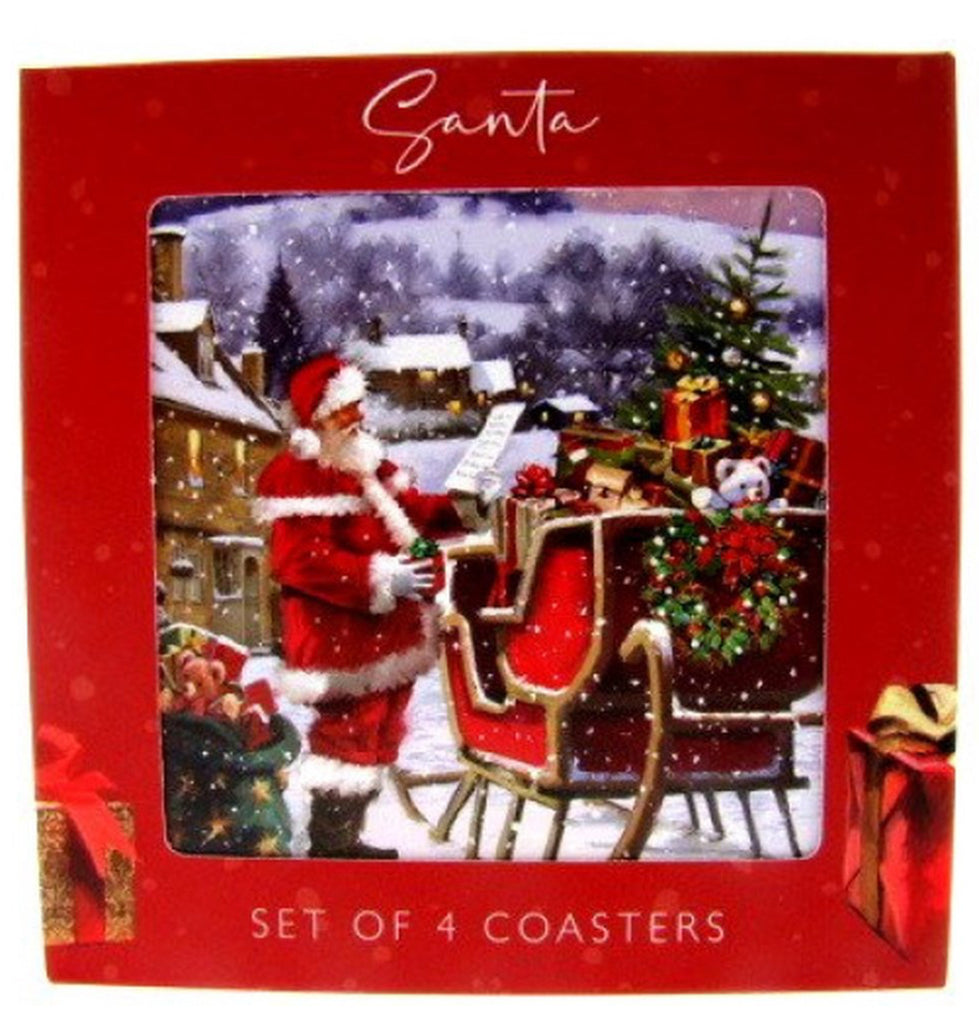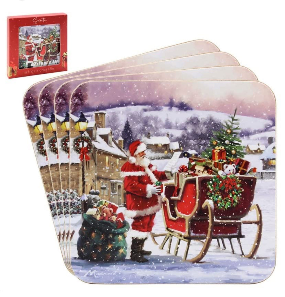 Set of 4 Festive Santa and Sleigh Coasters is backordered and will ship as soon as it is back in stock.