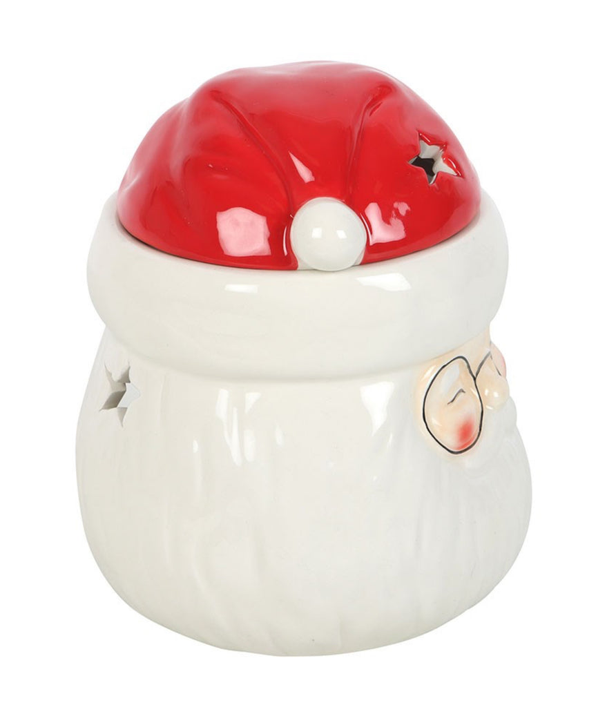 Add a jolly touch to the home with this Santa Claus-shaped ceramic oil burner and wax warmer. Featuring a cheerful Santa design, simply remove his hat and add festive essential oils or wax melts to the dish, placing a tealight candle below to fill the home with Christmas spirit. A sweet addition to any seasonal decor. Do not use more than one tealight and remove lid when in use. Never leave a lit burner unattended and allow to cool fully before handling. Designed by Something Different Wholesale and part of the A Christmas Wish collection of Christmas gifts and home decor.