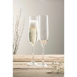 Ifyou love your "fizz" then our champagne flute pair are you. The champagne flute represents luxury and class. Aesthetically, it has a tall, thin body with medium to long stem that makes you immediately think of sophistication and indulgent celebrations. A flute shape glass really gives more "oomph" to your champagne/prosecco as more bubbles are generated and float to the surface. The luxurious glass shape along with the Erne pattern displaying light lines along the body adds a stylish and modern finish. Champagne/prosecco lovers this glass is for you.