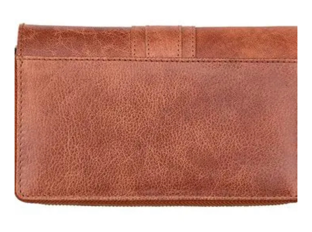 Arizona Large Leather Purse in tan. This purse will do everything you need it to do. Expertly handcrafted out of the Arizona waxy leather its engineered to last. The design is simple to use, held together by a popper, just open it up and you have 5 card slots, ID window and large note compartment.