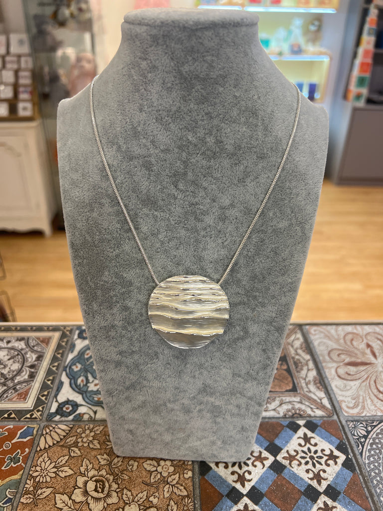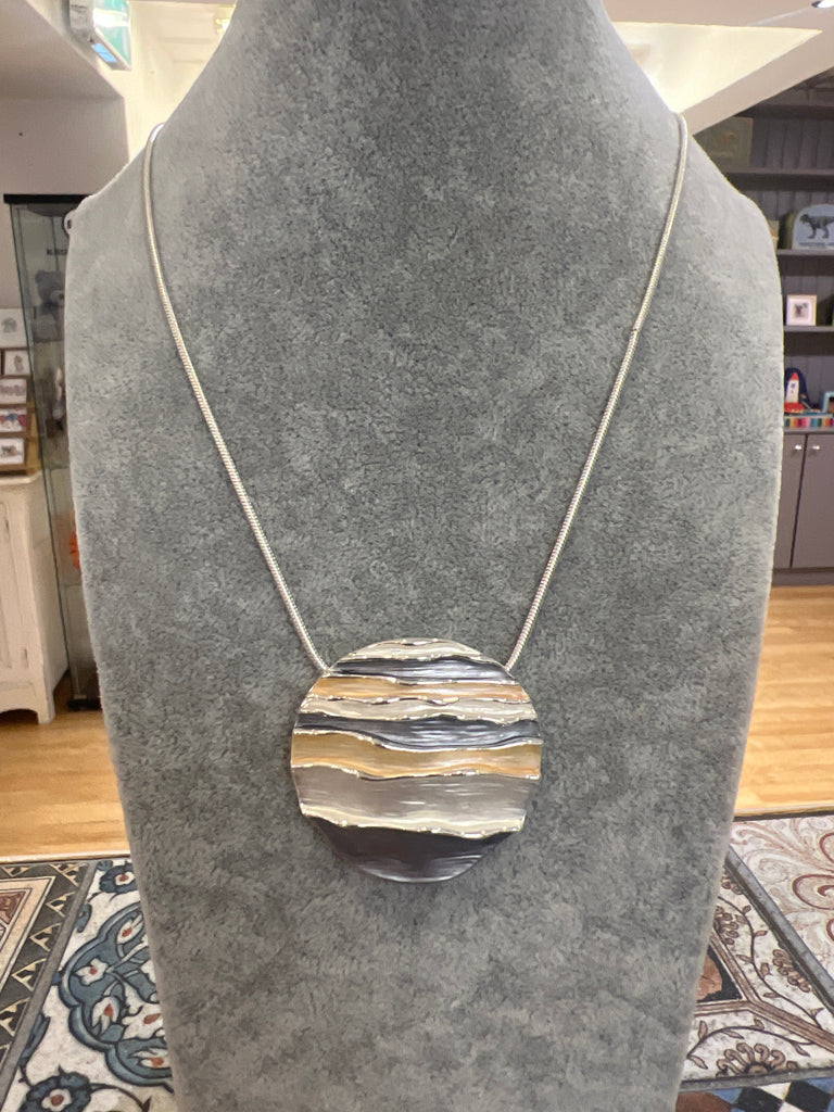 Sleek Silver Serpent Chain Necklace With Circular Pendant 3 Tone