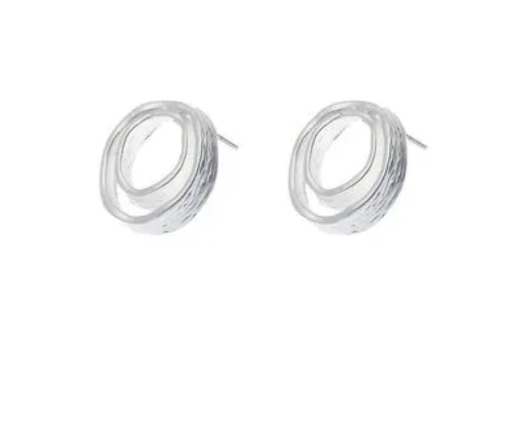 Sleek Eclipse Matte Silver Statement Stud Earrings