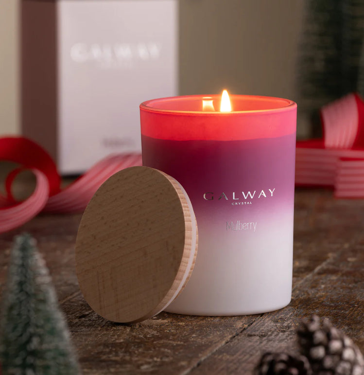 Galway Crystal Mulberry Wooden Lid Jar Candle Large