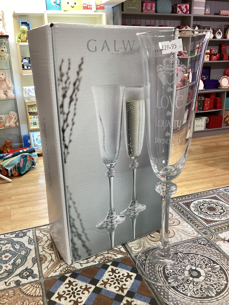 Galway Crystal Liberty Flute Pair- Claddagh Love Loyalty Friendship
