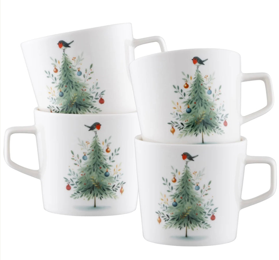 Aynsley Little Robin Christmas Tree - Mugs set of 4
