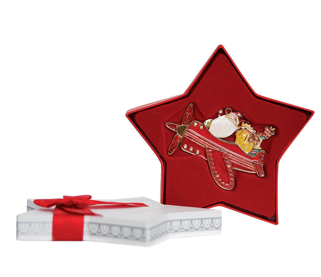 Tipperary Crystal Sparkle Santa In Plane Decoration