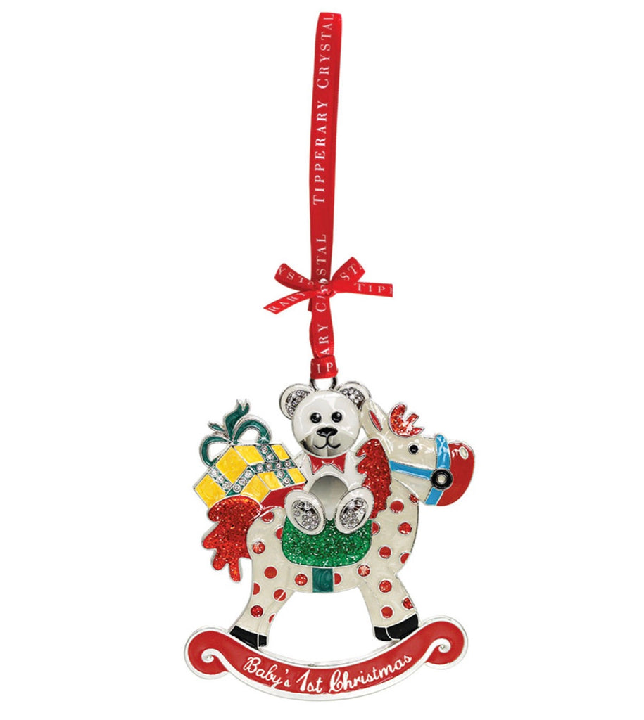 Tipperary Crystal Baby's 1st Christmas Sparkle Rocking Horse Decoration