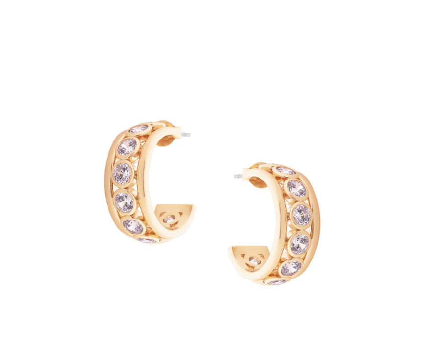 CRYSTAL SET HOOP EARRINGS GOLD is backordered and will ship as soon as it is back in stock.