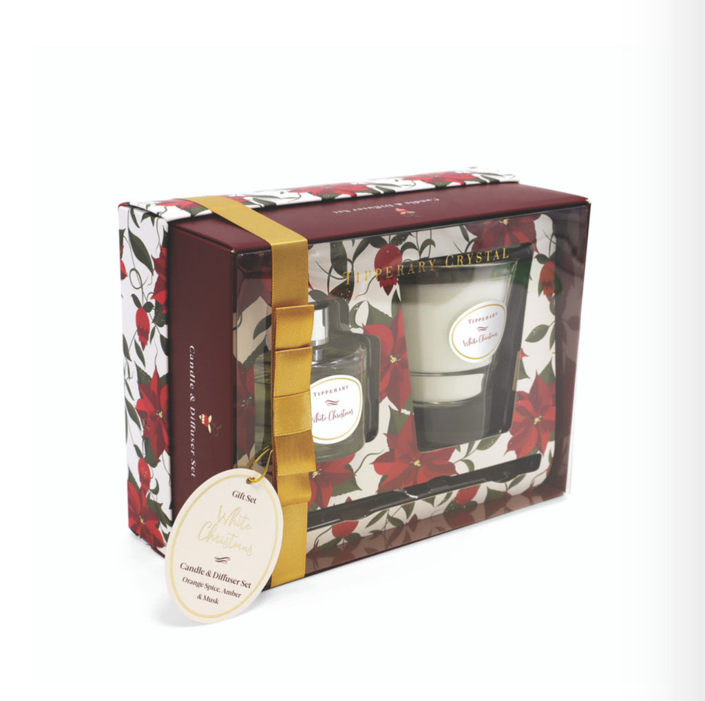 TIPPERARY CRYSTAL Poinsettia Candle & Diffuser Set - White Christmas