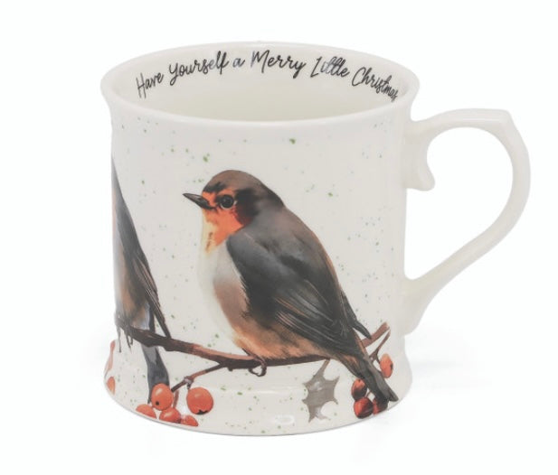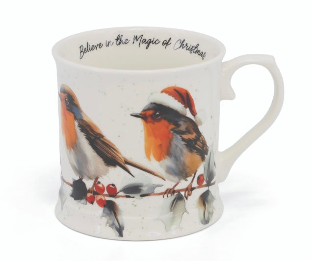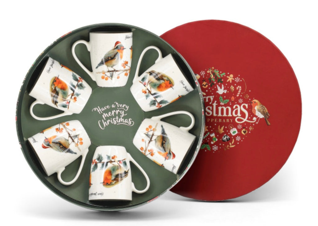 Tipperary Crystal Set of 6 Christmas Robin Mugs in Hatbox