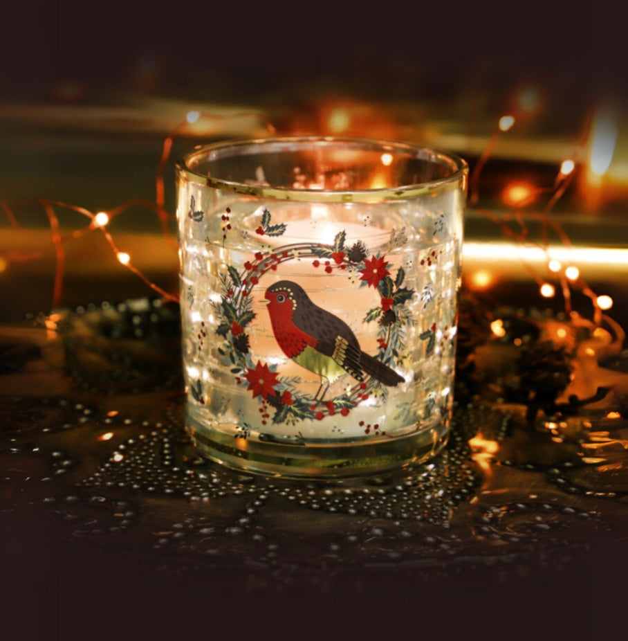 Tipperary Crystal LED Light Up Candle - Robin Wreath