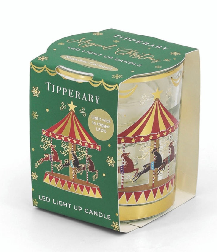 Tipperary Crystal LED Light Up Candle - Reindeer Carousel