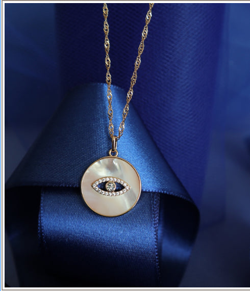 Tipperary Crystal Evil Eye Mother of Pearl Gold Pendant