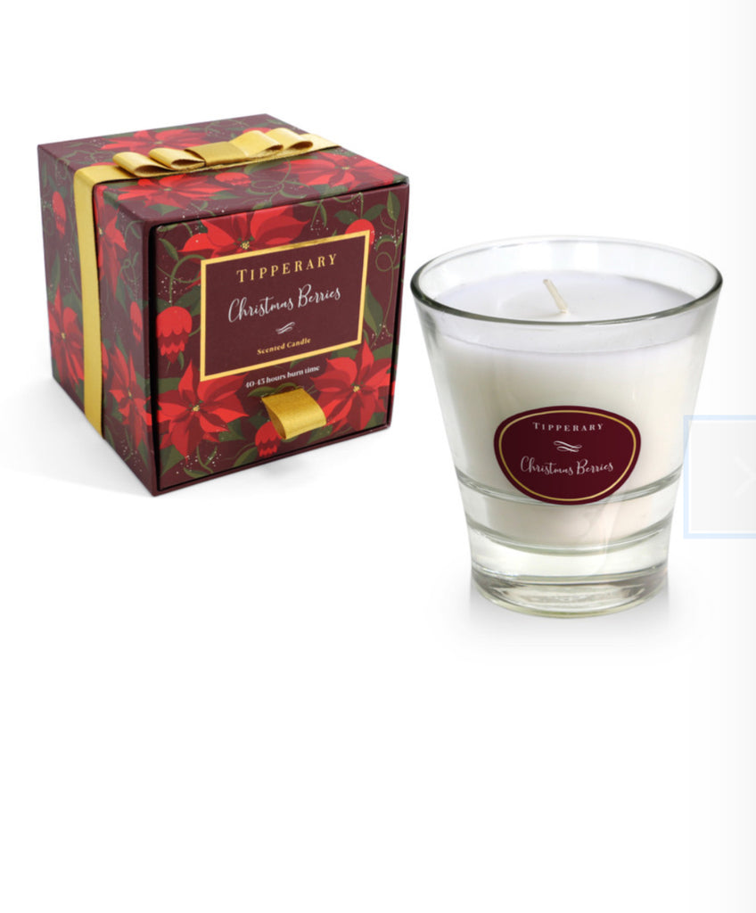 TIPPERARY CRYSTAL Poinsettia Tumbler Candle - Christmas Berries is backordered and will ship as soon as it is back in stock.