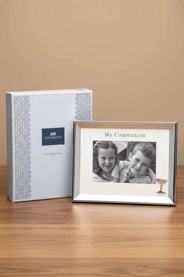 Beautiful silver First Holy Communion photo frame from Newgrange Living in a lovely gift box.