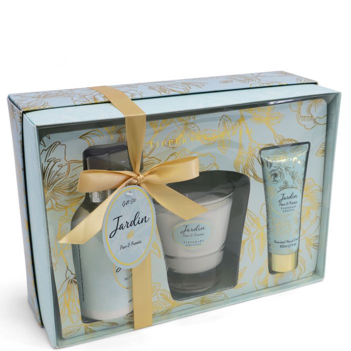 Tipperary Crystal Jardin Pear & Freesia Candle & Handcream Tube & Pump Set
