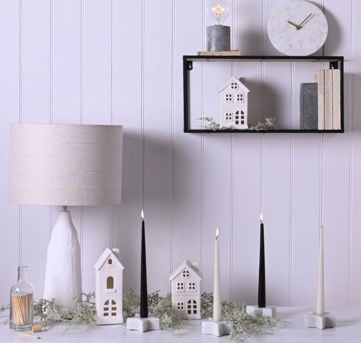 A white ceramic LED tall house ornament by THE SEASONAL GIFT CO®. This contemporary light fitting makes is a desirable alternative to traditional options. The matt white ceramic ornament showcases a striking tall house design, complete with cut-out windows. Its LED light creates an ambient mood when displayed at home. The house is packaged in a brown box.